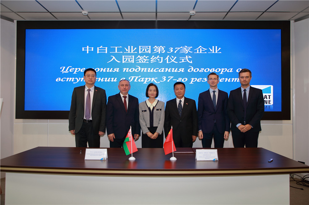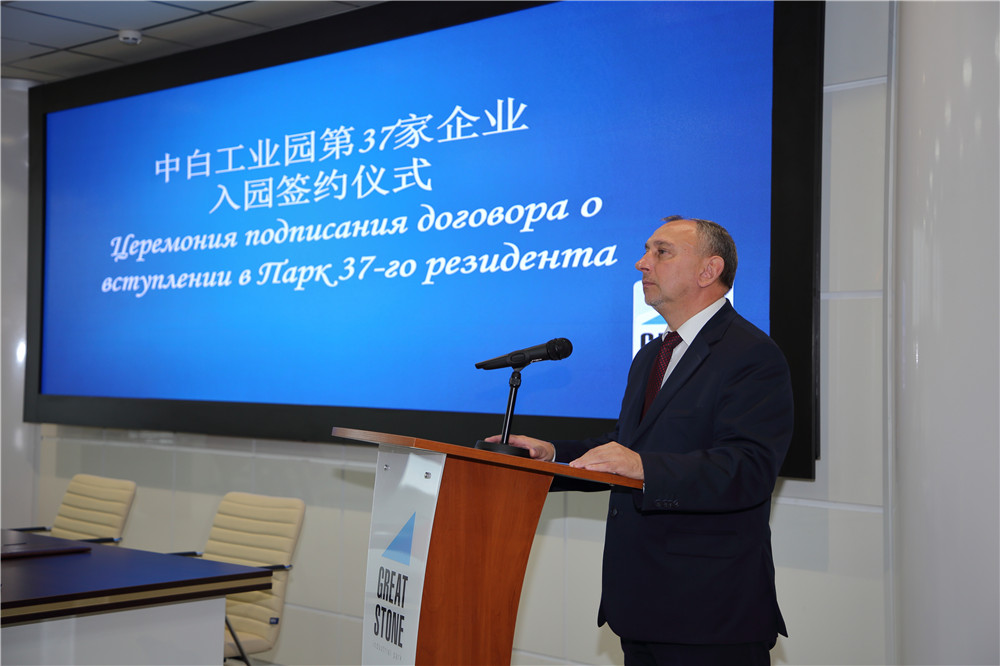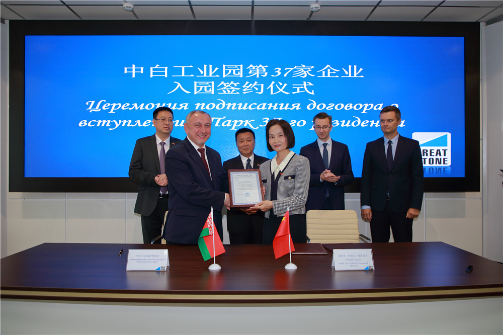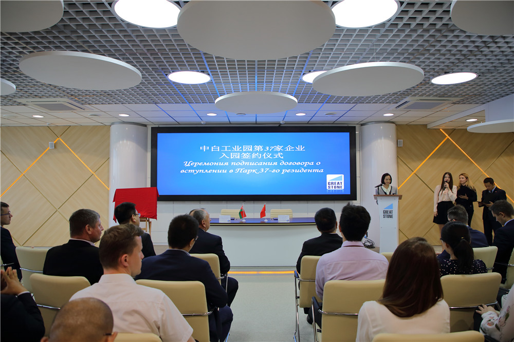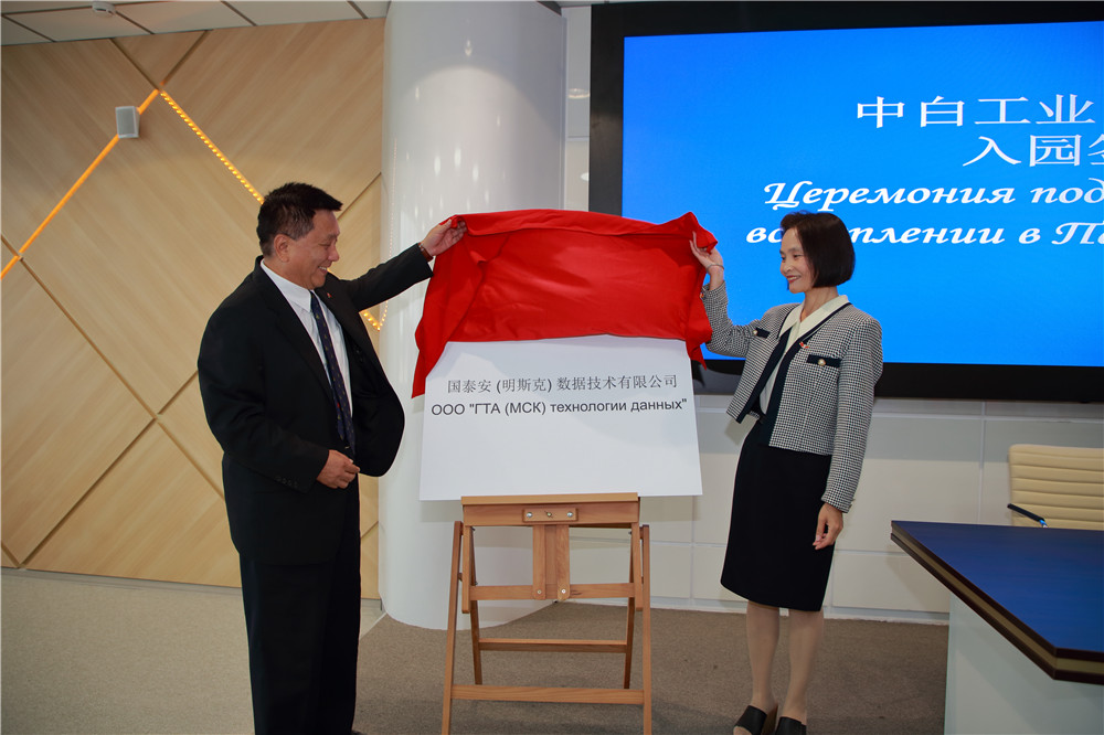 2018年8月16日上午,國泰安(明斯克)數據技術(shù)有限公司(下稱(chēng)國泰安公司)入園簽約儀式在中白工業(yè)園新聞發(fā)布廳舉行。中白工業(yè)園區管委會(huì )主任亞羅申科與國泰安公司總經(jīng)理季芳簽訂了入園合同,并頒發(fā)了入園居民企業(yè)證書(shū)。隨后,中白工業(yè)園區開(kāi)發(fā)股份有限公司(下稱(chēng)開(kāi)發(fā)公司)CEO胡政與季芳共同為國泰安公司揭牌。
