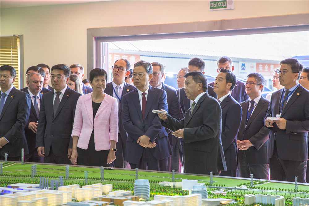 趙樂(lè )際書(shū)記首先來(lái)到園區規劃館,聽(tīng)取了中白工業(yè)園區管委會(huì )主任亞羅申科和中白工業(yè)園區開(kāi)發(fā)公司首席執行官胡政關(guān)于園區規劃和開(kāi)發(fā)運營(yíng)情況的匯報,在園區“一站式”服務(wù)大廳聽(tīng)取了園區管委會(huì )的介紹和演示,在招商局集團投資建設的中白商貿物流園展示交易中心聽(tīng)取了商貿物流園規劃建設和運營(yíng)回報的匯報,參觀(guān)了白俄羅斯首個(gè)公共保稅物流倉、剛剛設立的海關(guān)站及中國援建110KV變電站等項目。在中白工業(yè)園中國投資企業(yè)展示大廳逐一了解了中國入園企業(yè)情況。趙樂(lè )際指出,要認真落實(shí)習近平總書(shū)記重要指示,堅持正確義利觀(guān),堅持共商共建共享,堅持綠色發(fā)展、高質(zhì)量發(fā)展,打造成為絲綢之路經(jīng)濟帶上的標志性項目。