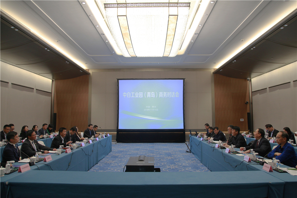 2018年11月14日上午,中白工業(yè)園(青島)商務(wù)對話(huà)會(huì )在青島國際會(huì )議中心舉行。此次會(huì )議由青島市商務(wù)局主辦,青島市商務(wù)局局長(cháng)馬衛剛,中白工業(yè)園區開(kāi)發(fā)公司CEO胡政等領(lǐng)導及青島各區市商務(wù)主管部門(mén)、上海合作組織實(shí)業(yè)委員會(huì )企業(yè)的60余人參會(huì )。