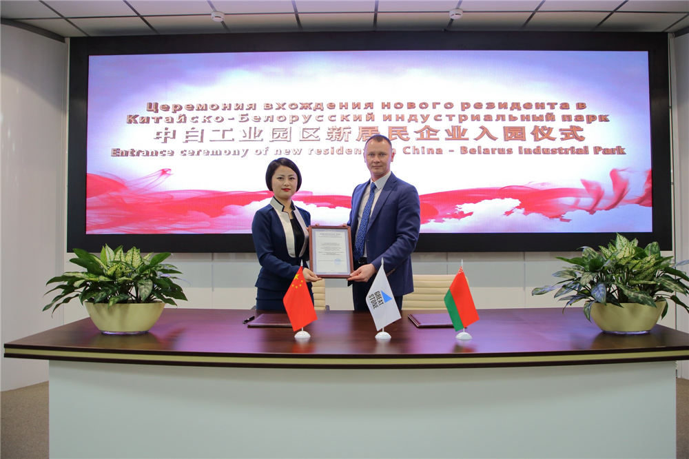 2019年1月3日上午,中白工業(yè)園招商引資工作迎來(lái)開(kāi)門(mén)紅,微智國際(白俄羅斯)有限責任公司(下稱(chēng)“微智國際”)成為園區的第42家居民企業(yè),中白工業(yè)園管委會(huì )副主任列曉諾克,副主任貢恰羅夫,園區開(kāi)發(fā)公司總經(jīng)理李海欣,微智國際首席代表包瑩出席了入園儀式。儀式上,列曉諾克與包瑩簽訂了入園協(xié)議,并頒發(fā)了入園證書(shū),李海欣與包瑩共同為企業(yè)揭牌。