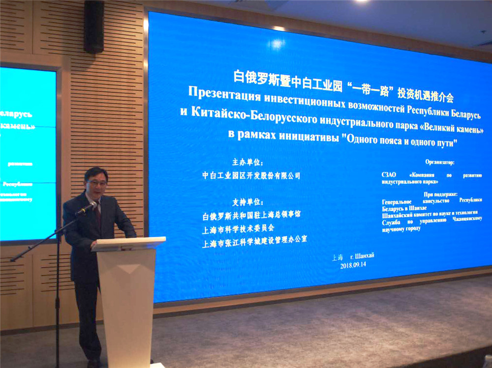 2018年9月14日下午,白俄羅斯暨中白工業(yè)園“一帶一路”投資機遇推介會(huì )在上海張江科學(xué)城舉辦,白俄羅斯共和國駐上??傤I(lǐng)事馬采利·瓦列里,上海市科學(xué)技術(shù)委員會(huì )秘書(shū)長(cháng)謝文瀾,中白工業(yè)園管委會(huì )副主任列肖諾克·伊戈里,上海張江科學(xué)城建設管理辦公室副主任張翎,中白工業(yè)園區開(kāi)發(fā)公司副總經(jīng)理任飛等出席本次推介會(huì )。