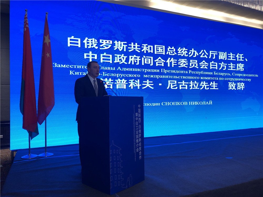 3月27日上午,中國(陜西)-白俄羅斯經(jīng)貿合作暨中白工業(yè)園推介會(huì )系列活動(dòng)在西安市舉行,活動(dòng)由陜西省商務(wù)廳、白俄羅斯駐華大使館、中白工業(yè)園區開(kāi)發(fā)公司共同主辦,陜西省副省長(cháng)趙剛,白俄羅斯總統辦公廳副主任、中白政府間合作委員會(huì )白方主席斯諾普科夫·尼古拉,白俄羅斯駐華特命全權大使魯德·基里爾,白俄羅斯經(jīng)濟部副部長(cháng)別爾米諾娃·伊蓮娜,園區管委會(huì )主任亞羅申科,園區開(kāi)發(fā)公司CEO胡政等領(lǐng)導出席了推介會(huì ),并共同見(jiàn)證了中白工業(yè)園管委會(huì )與浐灞管委會(huì )主任簽訂意向合作協(xié)議,會(huì )議由陜西省商務(wù)廳廳長(cháng)趙潤民主持。