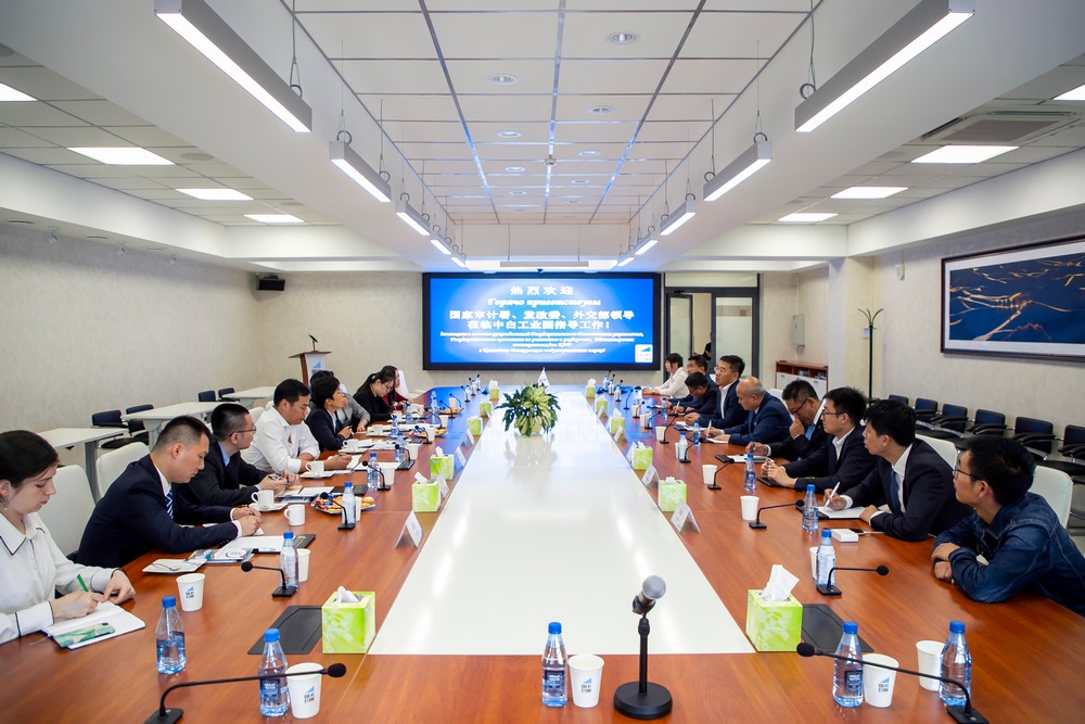 隨后,李海欣總經(jīng)理陪同代表團前往辦公樓進(jìn)行會(huì )談,并介紹了中白工業(yè)園在踐行“中國企業(yè)‘走出去’”戰略過(guò)程中的積累的經(jīng)驗和體會(huì )。李總談到,中白工業(yè)園是“中國企業(yè)‘走出去’”戰略、參與“一帶一路”倡議建設的重要平臺之一,園區的發(fā)展將不斷聚攏中國、白俄羅斯及周邊國家的優(yōu)勢產(chǎn)業(yè)和先進(jìn)技術(shù),形成協(xié)同效應,實(shí)現互利共贏(yíng)。梁晶副司長(cháng)對中白工業(yè)園綠色生態(tài)發(fā)展理念及取得的成績(jì)表示肯定,希望園區加大科研等領(lǐng)域的發(fā)展,不斷吸引高尖端人才,穩步推動(dòng)園區各方面的發(fā)展。