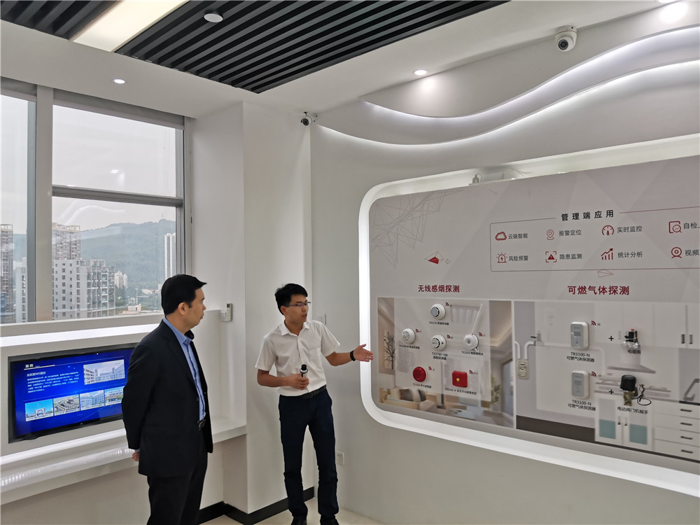 宋佳城歡迎嚴剛一行到訪(fǎng),他介紹了泰和安的基本情況。泰和安成立于2008年,是一家專(zhuān)注于物聯(lián)網(wǎng)消防產(chǎn)品與消防設備研發(fā)、制造、銷(xiāo)售、服務(wù)為一體的國家級高新技術(shù)企業(yè),在全國共有7個(gè)營(yíng)銷(xiāo)大區、300余家銷(xiāo)售服務(wù)機構、覆蓋全國280多個(gè)城市,在英國、新加坡、阿聯(lián)酋等國家開(kāi)設有多個(gè)海外業(yè)務(wù)公司,年營(yíng)銷(xiāo)額超10億人民幣。