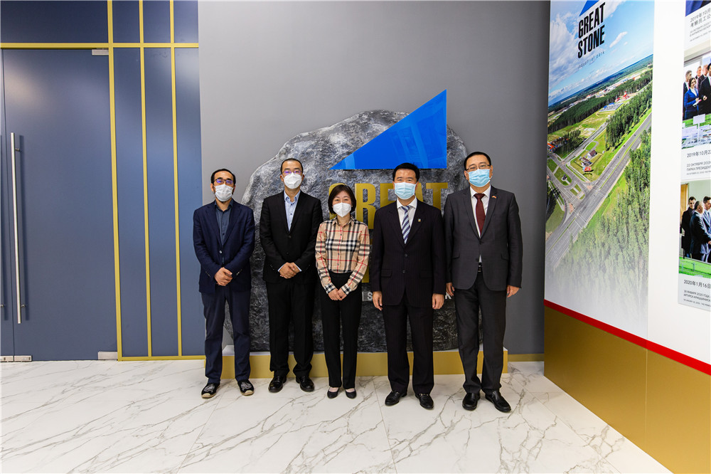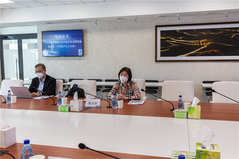 2021年8月4日上午,中國國家開(kāi)發(fā)銀行(以下簡(jiǎn)稱(chēng)國開(kāi)行)明斯克代表處首席代表魏彥蓉考察中白工業(yè)園,中白工業(yè)園區開(kāi)發(fā)公司總經(jīng)理嚴剛陪同考察并舉行座談會(huì ),開(kāi)發(fā)公司副總經(jīng)理白明、副總經(jīng)理任飛參加本次活動(dòng)。