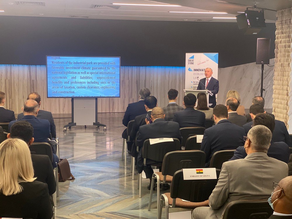 本次推介會(huì )在大使館的商務(wù)中心舉行,園區管委會(huì )主任亞羅申科和開(kāi)發(fā)公司副總經(jīng)理維杰霍夫斯基分別就園區作為投資平臺的優(yōu)勢、立法監管的創(chuàng )新以及與投資者合作的主要方式等內容進(jìn)行了詳細介紹。本次推介活動(dòng)匯聚了來(lái)自近30個(gè)國家的外交使團領(lǐng)導和代表們參加。