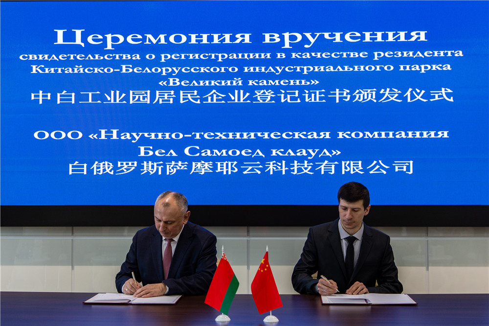 3月16日,白俄羅斯薩摩耶云科技有限公司(以下簡(jiǎn)稱(chēng)“薩摩耶云公司”)注冊成為中白工業(yè)園第86家居民企業(yè),園區管委會(huì )主任亞羅申科為白俄羅斯薩摩耶云科技有限公司總經(jīng)理切列久克頒發(fā)入園證書(shū)。開(kāi)發(fā)公司總經(jīng)理李鐘漢、園區管委會(huì )第一副主任亞基莫夫等領(lǐng)導出席入園儀式。白俄羅斯駐華大使館高級參贊哈爾拉普、中國海外產(chǎn)業(yè)協(xié)會(huì )會(huì )長(cháng)和振偉、薩摩耶云科技集團控股有限公司董事長(cháng)林建明通過(guò)視頻出席儀式。