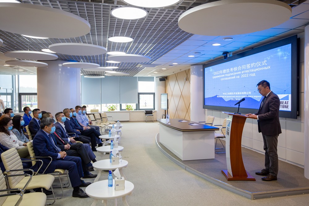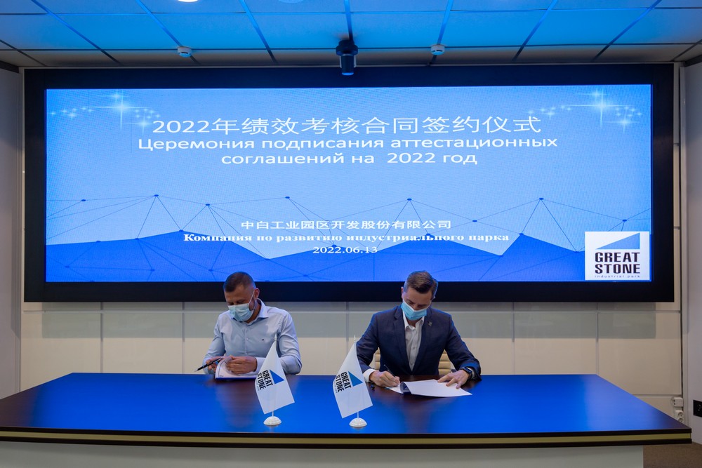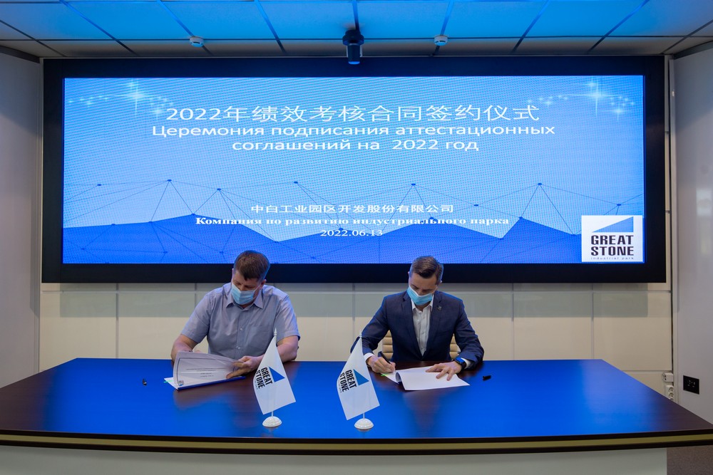 6月13日,中白工業(yè)園區開(kāi)發(fā)公司舉行全資子公司績(jì)效考核合同簽約儀式,開(kāi)發(fā)公司總經(jīng)理李鐘漢出席儀式并致辭,公司第一副總經(jīng)理卡羅杰夫分別與水務(wù)公司總經(jīng)理休爾科和物業(yè)公司總經(jīng)理若洛夫簽訂了績(jì)效考核合同,總經(jīng)理助理吳鵬主持簽約儀式。