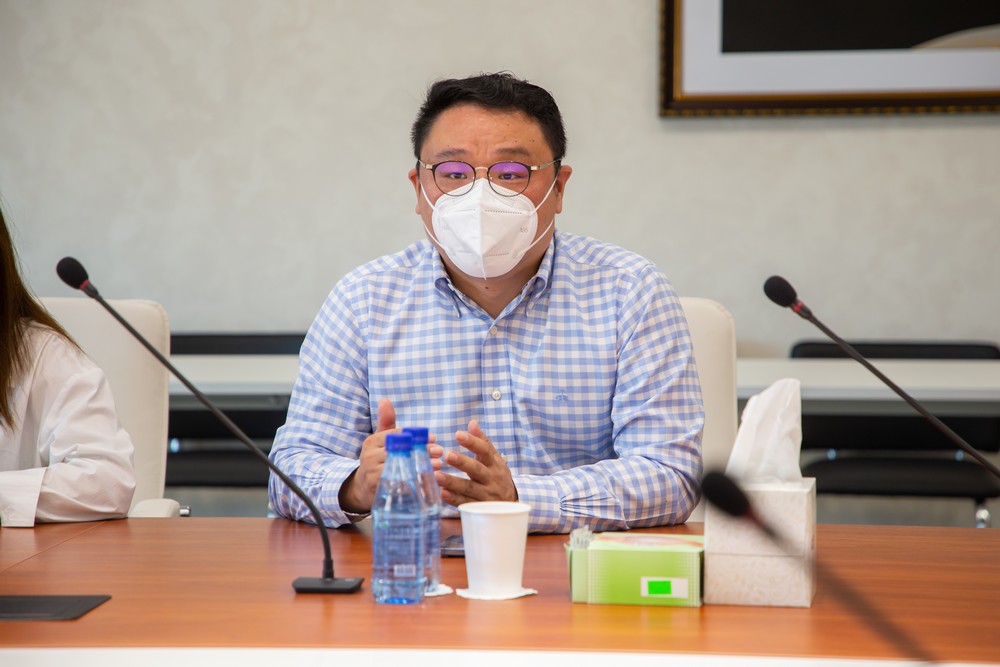 李鐘漢總經(jīng)理向優(yōu)矩互動(dòng)CEO彭亮介紹了園區發(fā)展的最新情況,闡述了園區在產(chǎn)品開(kāi)發(fā)、供應鏈管理方面的優(yōu)勢。他表示,開(kāi)發(fā)公司將會(huì )發(fā)揮自身優(yōu)勢為項目進(jìn)一步賦能,希望雙方發(fā)揮各自所長(cháng),把“白俄羅斯國家館”項目做大做強。