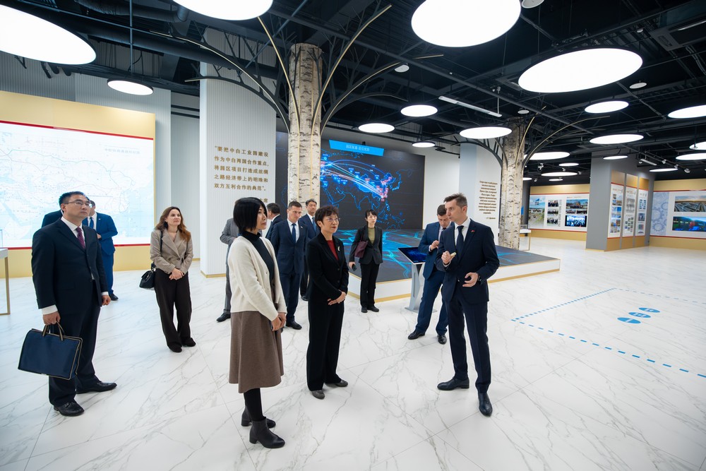 2023年10月25日下午,中國海關(guān)總署副署長(cháng)呂偉紅考察中白工業(yè)園,白俄羅斯農業(yè)部部長(cháng)巴爾托社、副部長(cháng)斯迷莉金、白俄羅斯海關(guān)委員會(huì )第一副主席瓦莉葉夫、白俄羅斯海關(guān)公司代理總經(jīng)理斯卡奇闊夫斯基、園區管委會(huì )第一副主任亞季莫夫、開(kāi)發(fā)公司第一副總經(jīng)理卡羅捷耶夫陪同考察。