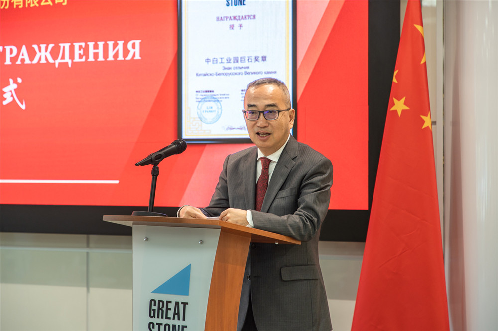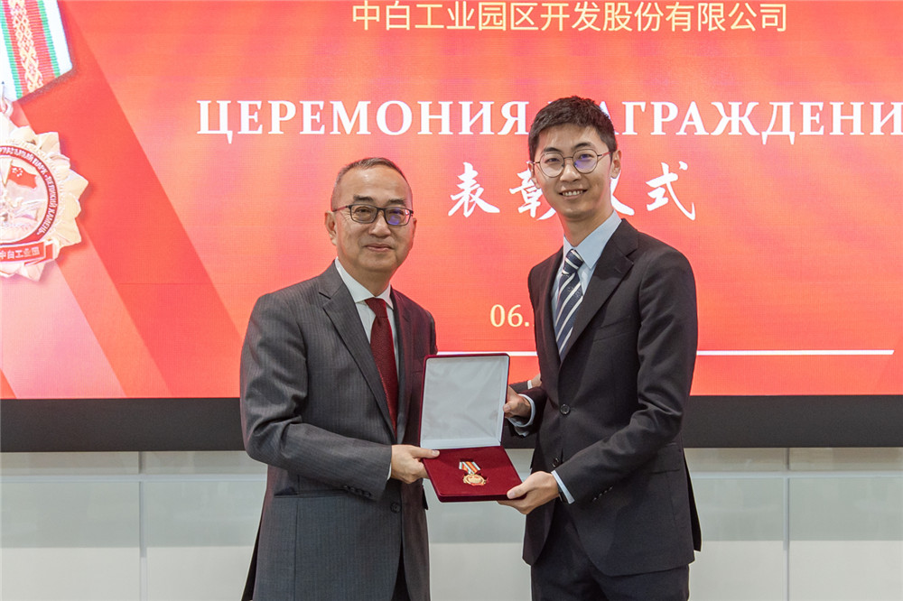 10月6日,中白工業(yè)園“巨石”獎?wù)骂C授儀式在園區舉行,中白警務(wù)中心中方工作組(以下簡(jiǎn)稱(chēng)“工作組”)組長(cháng)孫慶祥、副組長(cháng)查建安、警官劉立明、警官張興豪獲頒中白工業(yè)園“巨石”獎?wù)?,園區開(kāi)發(fā)公司總經(jīng)理李鐘漢向工作組組員頒發(fā)了“巨石”獎?wù)潞妥C書(shū),開(kāi)發(fā)公司副總經(jīng)理衛建華、首席法律顧問(wèn)羅利偉等領(lǐng)導出席本次活動(dòng)。