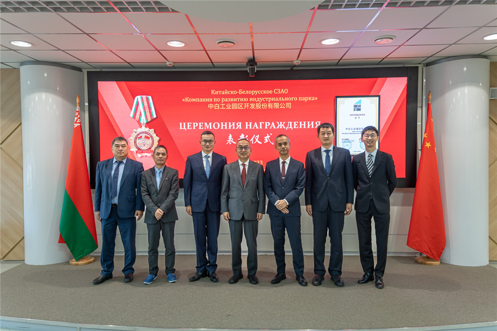 李鐘漢總經(jīng)理向工作組表示祝賀,并對孫慶祥組長(cháng)領(lǐng)導的工作組四人在兩年里為園區發(fā)展所作出的貢獻表示衷心感謝,他表示,工作組于2021年疫情嚴重時(shí)期抵白開(kāi)展中白警務(wù)合作工作,與園區開(kāi)發(fā)公司、居民企業(yè)、其他中資企業(yè)及白俄合作單位同舟共濟,面對近年來(lái)出現的諸多困難,開(kāi)展了全面的安全防護、安全教育、協(xié)助白方執法等工作,取得了卓有成效的成果,既充分體現了中國人民警察的專(zhuān)業(yè)素質(zhì),更以實(shí)際行動(dòng)詮釋“警民一家親,攜手共發(fā)展”的合作理念,為把中白工業(yè)園打造成和諧、平安、高效、可持續發(fā)展的開(kāi)放型園區做出了卓越的貢獻。