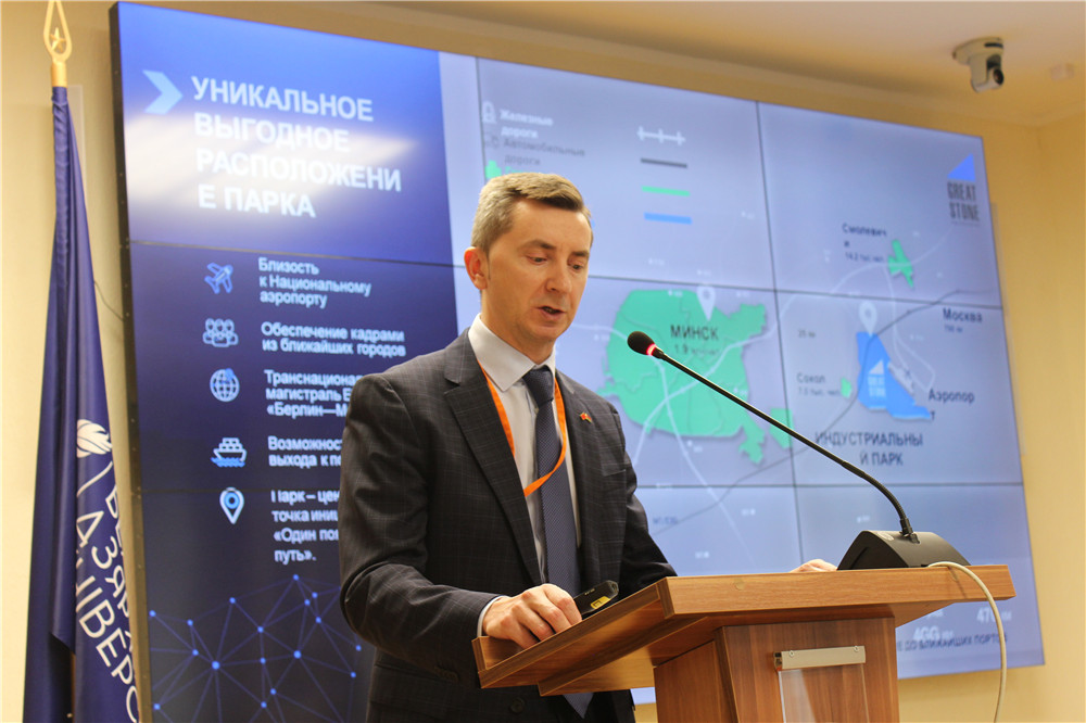 卡羅捷耶夫感謝受邀參加本次活動(dòng),并發(fā)表了主題為《以中國-白俄羅斯巨石工業(yè)園的發(fā)展為例,實(shí)現白中貿易、經(jīng)濟、信貸和投資合作潛力的方式和方向》的主題發(fā)言。