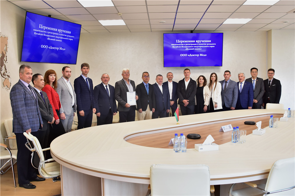 2024年7月5日,白俄羅斯Доктор Мед公司成為園區居民企業(yè),園區管委會(huì )主任亞羅申科與企業(yè)負責人簽署入園協(xié)議,并向其頒發(fā)入園證書(shū),園區開(kāi)發(fā)公司總經(jīng)理李鐘漢參加本次活動(dòng)。