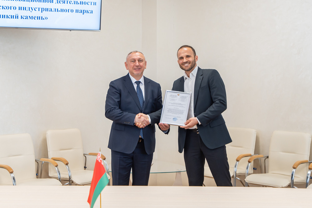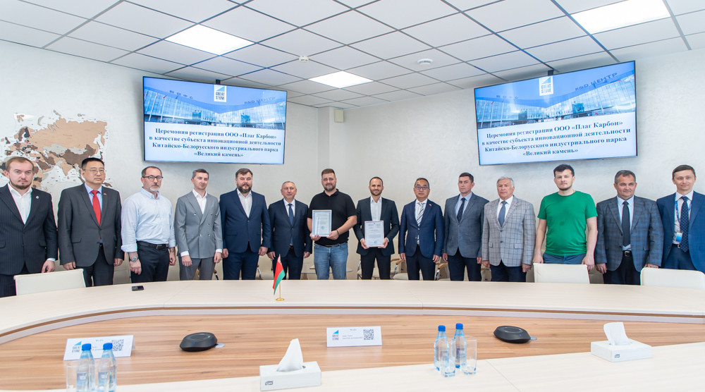 2024 年 7 月 9 日,居民企業(yè)白俄羅斯航空運輸物流有限公司和創(chuàng )新活動(dòng)主體白俄羅斯Плаг Карбон有限公司入駐中白工業(yè)園,園區管委會(huì )主任亞羅申科分別向兩家公司負責人頒發(fā)居民企業(yè)證書(shū)和創(chuàng )新活動(dòng)主體證書(shū),園區開(kāi)發(fā)公司總經(jīng)理李鐘漢出席本次活動(dòng)。