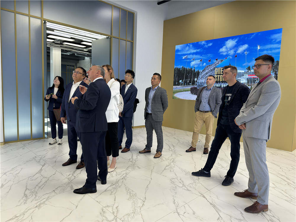 2024年9月7日,廣汽埃安新能源汽車(chē)副總經(jīng)理鄭純麒考察園區,園區管委會(huì )主任亞羅申科、園區開(kāi)發(fā)公司第一副總經(jīng)理基里爾陪同考察。