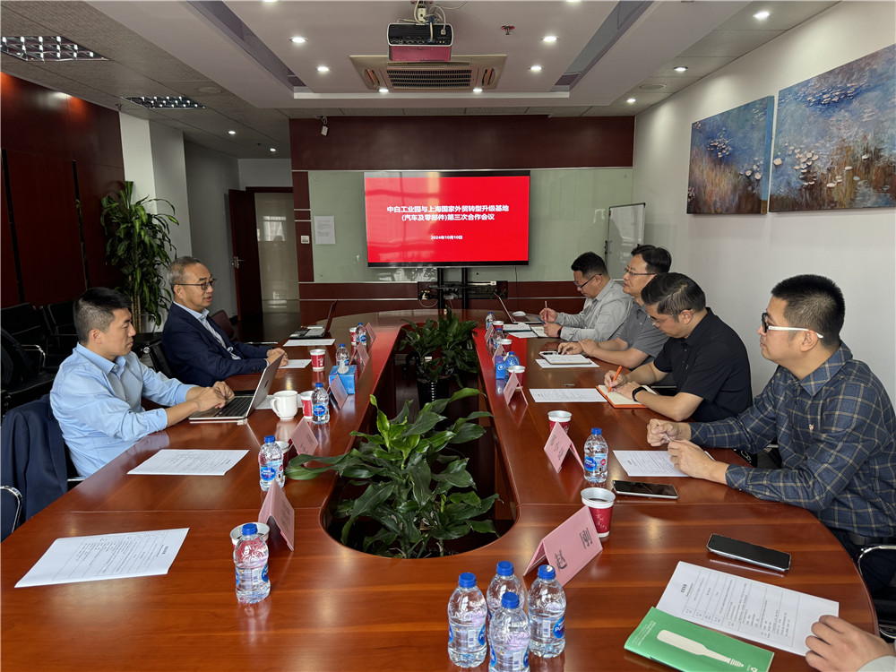 10月10日,中白工業(yè)園區開(kāi)發(fā)公司總經(jīng)理李鐘漢考察上海安亭國家外貿轉型升級基地(汽車(chē)及零部件),與安亭基地總經(jīng)理孫健、順為汽車(chē)CFO李世斌、夢(mèng)馬汽車(chē)小鎮海外事業(yè)部總經(jīng)理田堃、驛二三新能源總經(jīng)理王崗舉行合作會(huì )議。