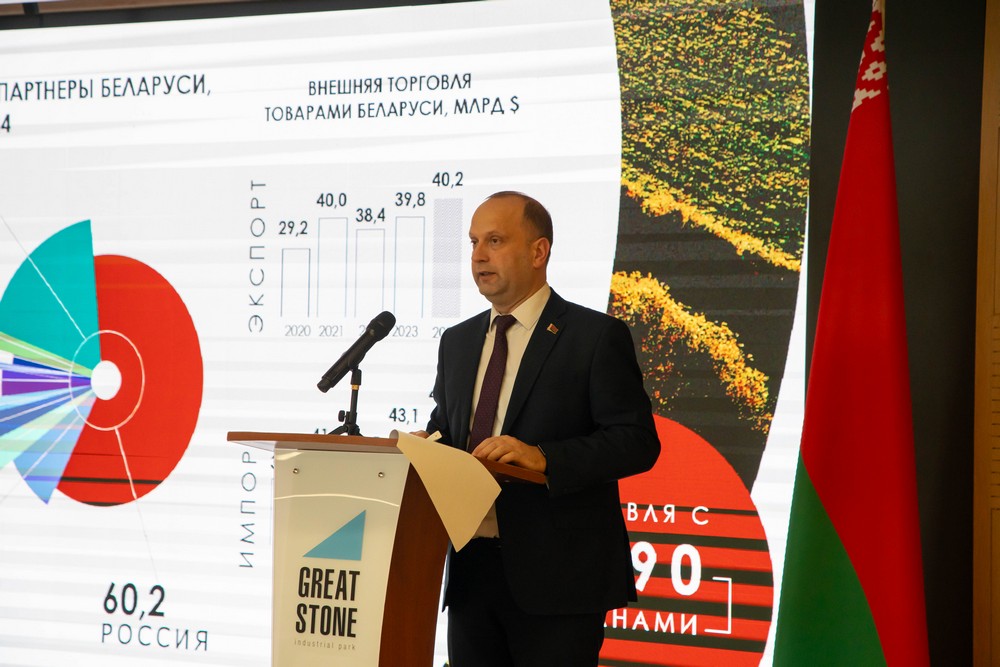 2025 年2月12日,白俄羅斯經(jīng)濟投資與出口潛能研討會(huì )在中白工業(yè)園區舉行。白俄羅斯共和國國民議會(huì )眾議院主席謝爾蓋延科、白俄羅斯經(jīng)濟部部長(cháng)切博塔里、園區管委會(huì )主任亞羅申科、白俄羅斯工商會(huì )主席米亞特利科夫、等領(lǐng)導出席本次研討會(huì )并致辭,國民議會(huì )眾議院130余名議員共同參加本次活動(dòng)。