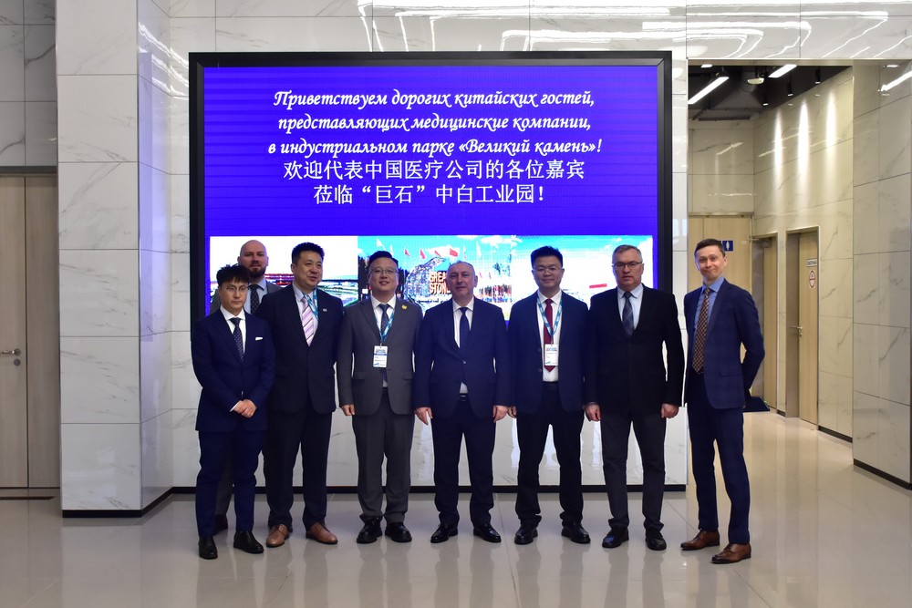 4月16日 ,重慶復迪脈數字科技有限公司董事長(cháng)胡棒、山東脈和增材制造有限公司董事長(cháng)高新江考察中白工業(yè)園。園區管委會(huì )主任雅羅申科、海虹白俄醫療科技有限公司總經(jīng)理陳超陪同考察。