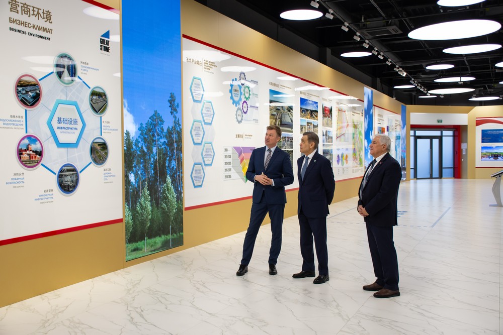 在園區規劃館,列別江采夫向秘書(shū)長(cháng)詳細介紹了中白工業(yè)園的發(fā)展歷程、重點(diǎn)產(chǎn)業(yè)方向、優(yōu)惠政策體系和發(fā)展規劃前景,并展示了居民企業(yè)生產(chǎn)的各類(lèi)產(chǎn)品樣品。列別江采夫強調,隨著(zhù)"一帶一路"倡議與上海合作組織發(fā)展戰略的深入對接,園區將迎來(lái)更廣闊的發(fā)展前景。