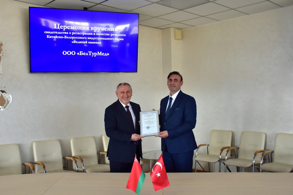 2025 年3月21日,白土醫療有限公司(土耳其)入駐中白工業(yè)園,成為第一家土耳其投資的園區居民企業(yè)。園區管委會(huì )主任雅羅申科向白土醫療總經(jīng)理伊利科爾頒發(fā)居民企業(yè)證書(shū)...202503-21