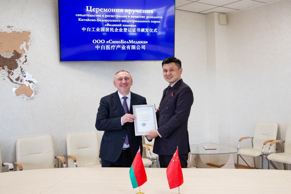 4月12日,中白醫療產(chǎn)業(yè)有限公司注冊成為園區居民企業(yè),中白工業(yè)園區管委會(huì )主任亞羅申科向中白醫療產(chǎn)業(yè)有限公司總經(jīng)理忻尚皓頒發(fā)入園證書(shū),開(kāi)發(fā)公司總經(jīng)理李鐘漢出席...202304-12