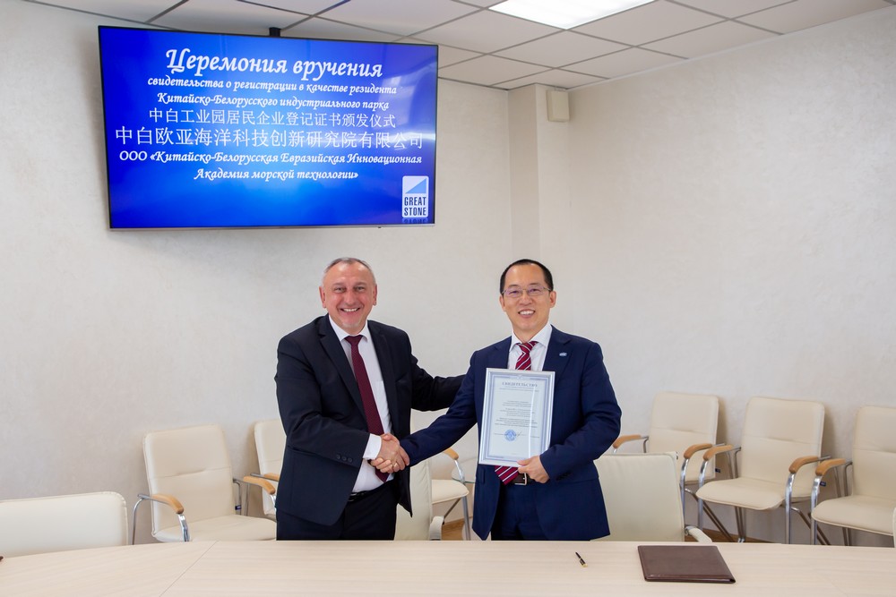 2021年7月21日,中白歐亞海洋科技創(chuàng )新研究院有限公司(以下簡(jiǎn)稱(chēng)“中白歐亞海洋研究院”)成為中白工業(yè)園第72家入園居民企業(yè),園區管委會(huì )主任雅羅申科向項目總經(jīng)理史正平...202107-21