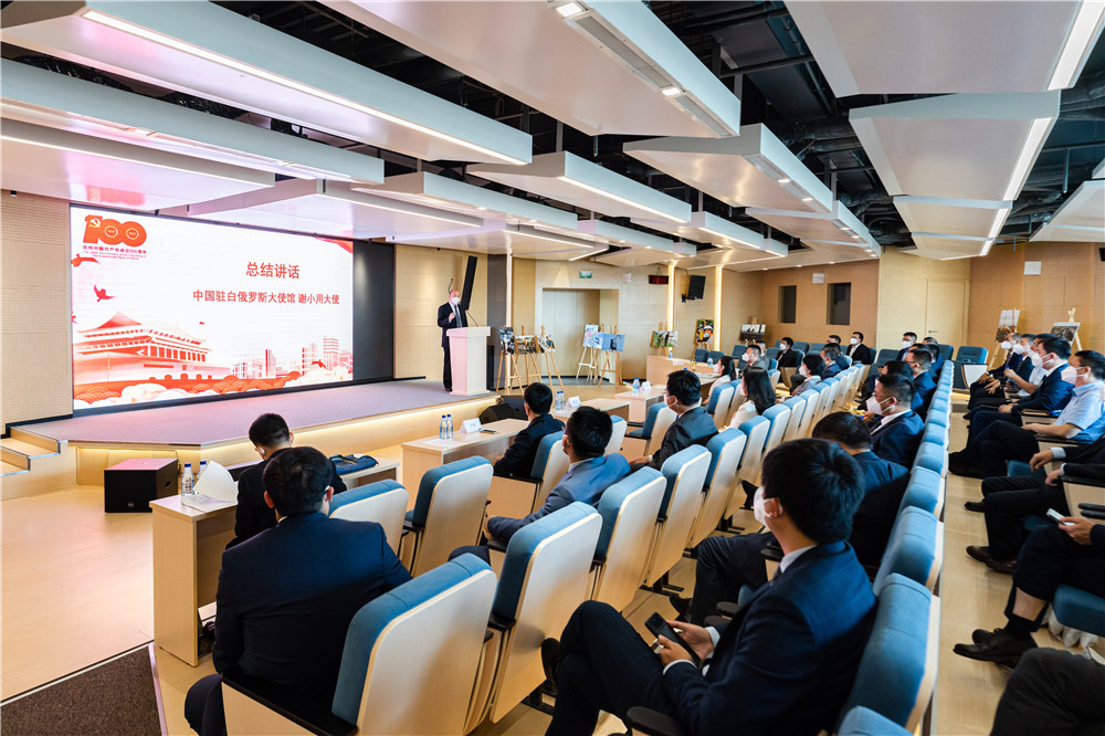 6月28日,在白中資企業(yè)慶祝中國共產(chǎn)黨成立100周年紅歌及攝影大賽優(yōu)秀作品展示暨頒獎儀式在中白工業(yè)園科創(chuàng )中心舉行,中國駐白俄羅斯特命全權大使謝小用,經(jīng)濟商務(wù)處參...202106-28