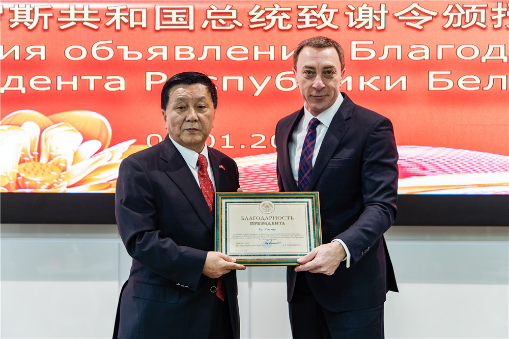 2020年1月3日上午,白俄羅斯總統盧卡申科給胡政的致謝令頒授儀式在中白工業(yè)園隆重舉行。白俄羅斯總統辦公廳副主任、中白政府間合作委員會(huì )白方主席斯諾普科夫親臨中白...202001-03